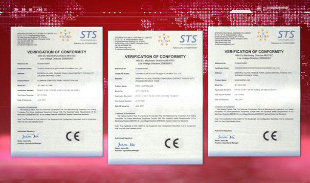 公司鋁塑板生產(chǎn)線、彩鋼涂裝生產(chǎn)線、熱鍍鋅生產(chǎn)線等獲得歐盟CE認(rèn)證